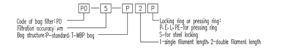 100 | Example: P0-5-p2p denotes standard 5μm Polypropylene needle punched bag, double with filament length with Polypropylene press ring. Parameters of filter bags