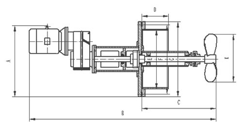 Basic principleSLGH lateral extended agitator is extended in the vat and connected to the tank (vat) by means of connecting the flange cover with the open flange of the vat. The paddle of the agitator is kind of ship propeller. Due to the rotation of paddle, liquor in the vat results in bidirectional movement. One is forward movement along the axial direction and the other is circular movement along the propeller. Movement along the axial direction due to the blocking of wall makes the liquor in the vat for circular movement, thus making liquor move up and down. In this way, liquor in the vat is stirred without accumulation of deposit in the bottom of the tank.