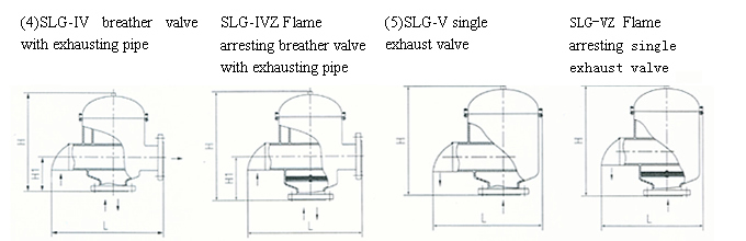 Main technical specifications ◆Suitable to special liquid and gas of petroleum, chemical, medicinal energy engineering; ◆ Operating pressure: A: -295Pa (-30mmH2O) +355Pa (+36mmH2O) B: -295Pa (-30mmH2O) +980Pa (+100mmH2O) C: -295Pa (-30mmH2O) +1750Pa (+180mmH2O) D: -295Pa (-30mmH2O) +98000Pa (+10000mmH2O) ◆Explosion class; BS 5501:IIA、IIB、IIC ◆Shell material: Carbon steel Al. alloy, ◆Material of valve disc and seat: Al.alloy, stainless steel; ◆Sealing material: Tetrafluoroethylene; ◆Flange standards: HG20592-97 PN1.0. If the customer requires GB,HGJ, JB, ANSI,JIS or change pressure grade, clear it in the contract. ◆Manufacturing, test and inspection should be in accordance with standards: SY7511, 《Manufacturing, test and inspection of breather valve used for petroleum container 》, GB5908-1986 《Fire arrestment performance and test methods of arrestor used for petroleum container》. Product model and specifications