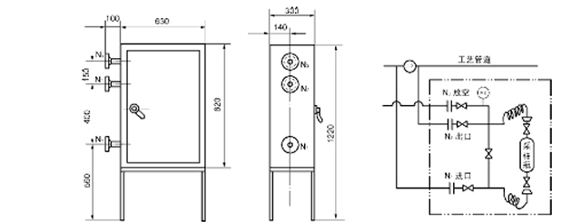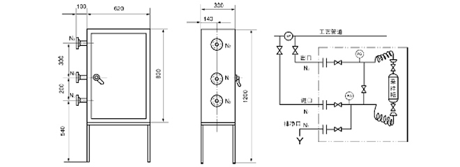 Notes: N1、N2、N3 orifices refer to DN15 PN1.6~10.0 N4、N5、N6 orifices refer to DN20 PN1.6 ③SCXM-II closed gas sampler ◎ Application scopeSCXM closed gas sampler is suitable to sampling of viscosity liquid medium with toxic, harmful, combustible and explosive features. ◎Technical parameter Sampling temperature: -20~50 oC Designed pressure: 0~10.0 Mpa; Sampling quantity: 200ml~500ml  Notes:N1、N2、N3、N4 orifices refer to DN15 PN1.6~10.0 ④SCXM-IIB closed gas sampler ◎ Application scope SCXM-IIB closed gas sampler is suitable to sampling of viscosity liquid medium with toxic, harmful, combustible and explosive features. ◎Technical parameter Sampling temperature:-20~50 oC Designed pressure: 0~10.0 Mpa; Sampling quantity: 200ml~500ml Notes:N1、N2、N3、N4 orifices refer to DN15 PN1.6~10.0 N5、N6、N7 orifices refer to DN20 PN1.6 Notices for order: 1. Make clear the model of sampler, medium description, pressure and temperature. 2. Make clear the standard of flange.